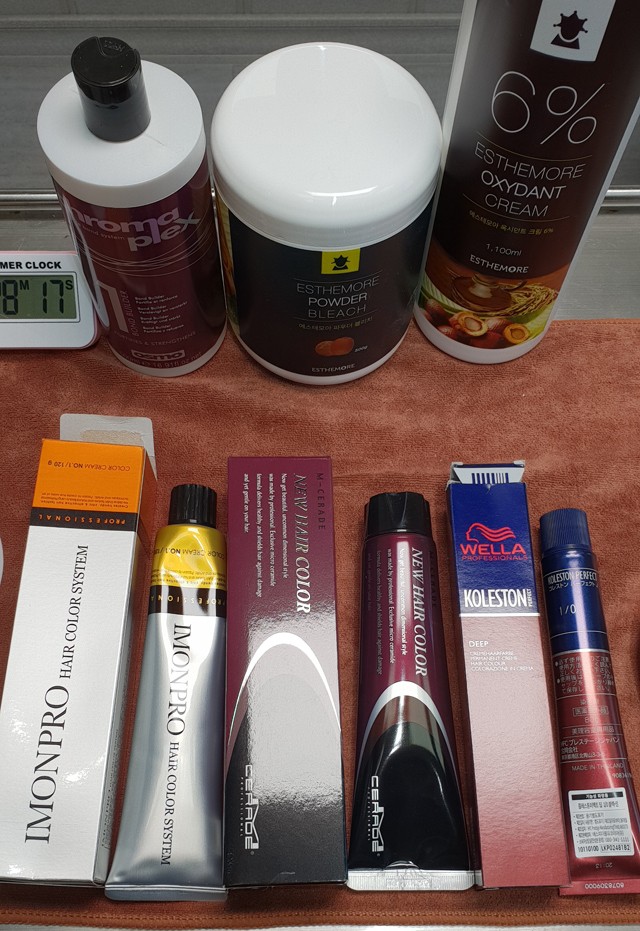 헤어119 | 블랙빼기 중간정리편입니다.컬러 ▶검정 염모제 아이몬 B1 탈색된 모발에 아이몬 B1 1:1 3%산화제 사용하여 블랙염색을했습니다.모발이력자연모발 ▶탈색 ▶검정염색(아이몬B1)중간에 탈색된 모발은 남겨두고 블랙빼기에 들어갑니다.클로마플렉스(모발강화제)희석액을 분무합니다.물분무를 대신하여..물100:강화제 10희석액강화제는 손상된 모발의 S+S S+S 결합을 이어주는 역할을 합니다.혼합 비율입니다.탈색제100 : 100g 6% 산화제(탈색 및 블랙빼기전용)를 믹서합니다.클로마 플렉스(모발강화제)는 탈색제... 2018 | 조회 : 1646 | 댓글수 : (1) 글쓰기