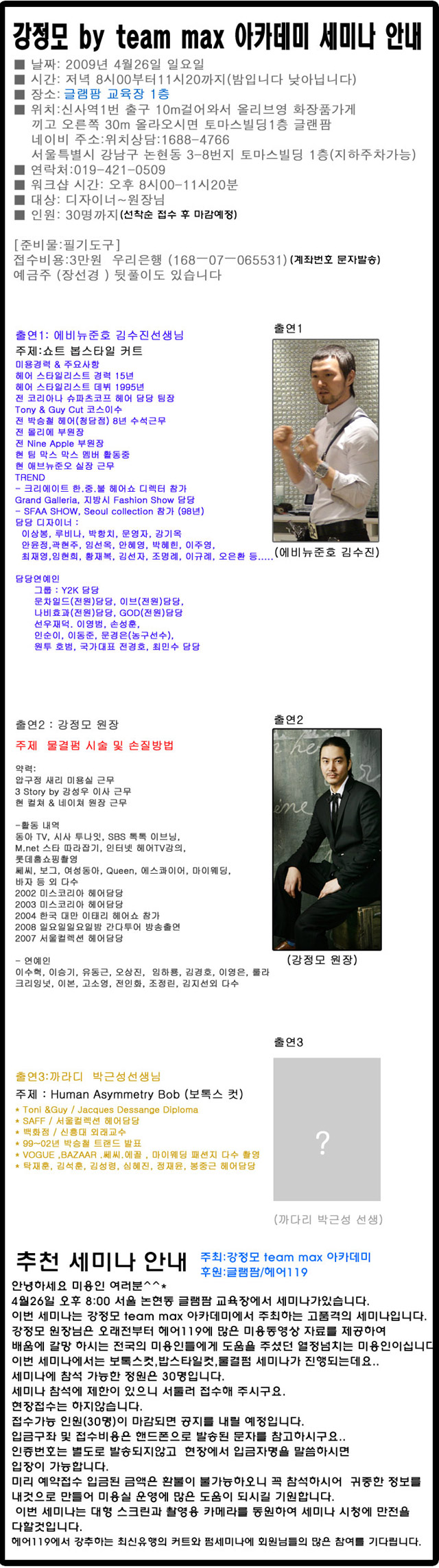 |  | Q4월 세미나 안내입니다 헤어119  |  죄송합니다