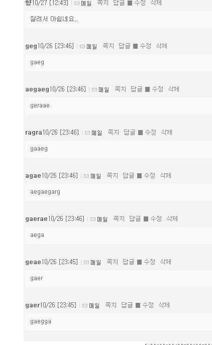 엽미형님,하나형님 빨리 이머니 돌리도고~~~~~~~~~^^^^*^										   2008  |  조회 : 1239  |  댓글수 : (9)    글쓰기