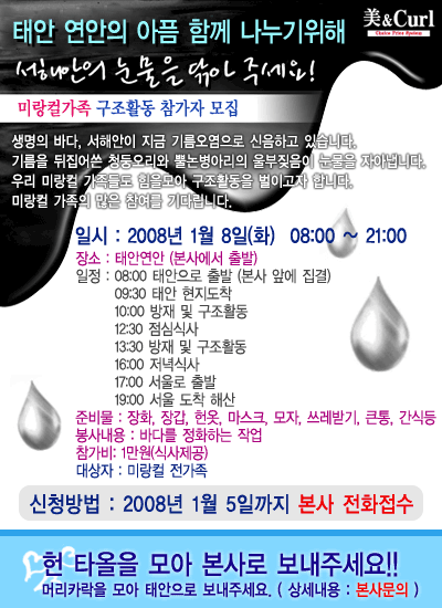 머리카락을 모아서 태안군청 상황실로 보내시면 됩니다